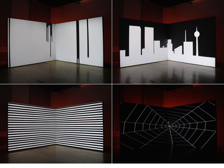 Part II: Do you see the same blue as me? makes free associations to an award-winning research project by neuro physician Leon Cooper where he trained a computer network to see like a cat. The 2-channel animation Do you see the same blue as me? imagines the relationship between the network and its creator. Elastic black and white shapes refer to things outside of the digital reality of this computer network. This work suggests that the only way to see the world with fresh eyes would be to disconnect the pathway to our visual memories.